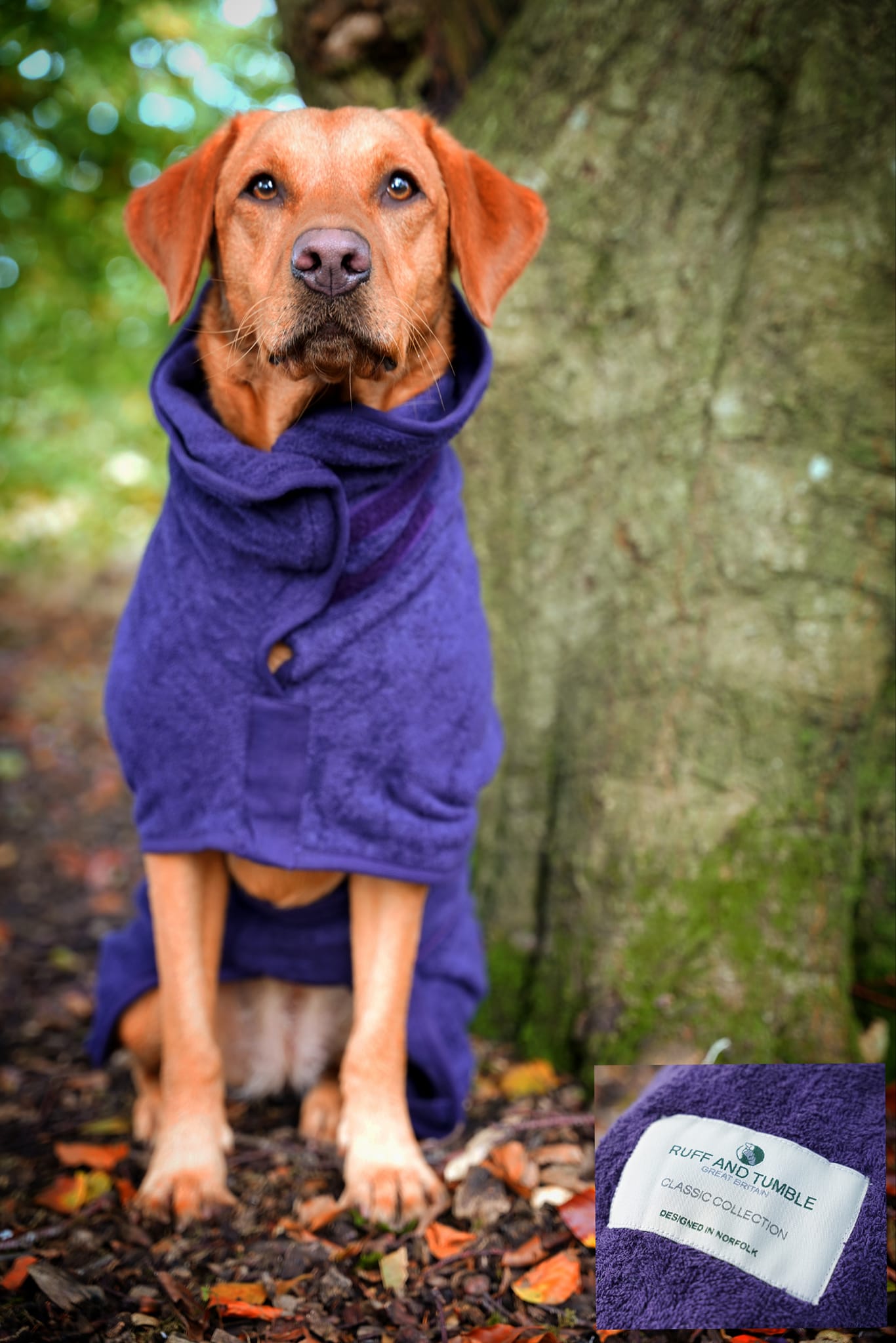Ruff and Tumble Dog Drying Coats can work wonders for this purpose - although they're primarily for drying wet dogs, they also do a great job at swaddling and warming nervous dogs. The dog robes are able to be wrapped tightly around the dog and secured with Velcro, and have leg straps to keep the coat in place.