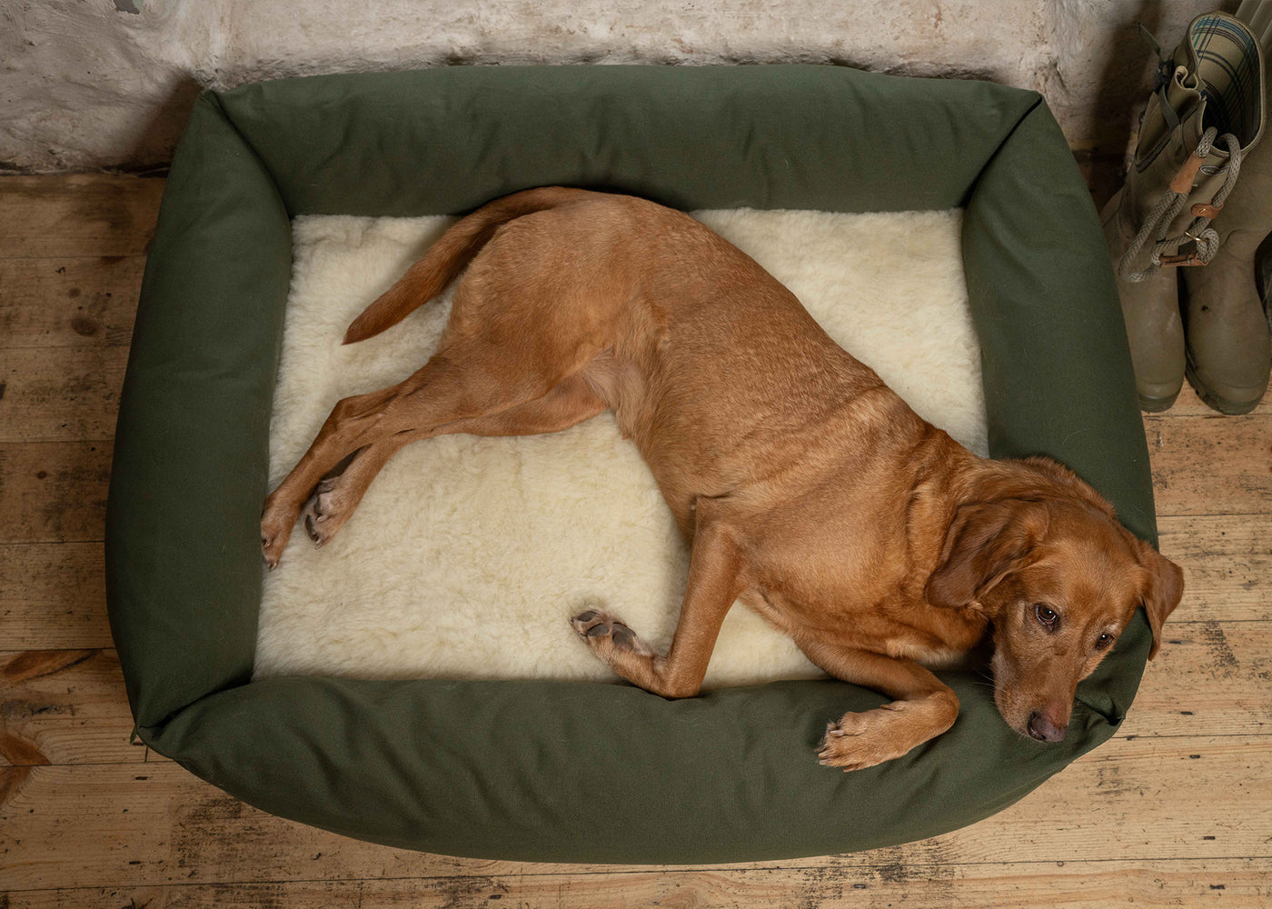 The new Burnham Bolster Bed comes with two accessories: a bespoke Burnham Bolster Towelling Bed Cover and Wool Fleece Topper. From the canvas covers to the squidgy bolsters and the double-layered mattress, it's a bed made the Ruff and Tumble way: high on style, big on comfort and huge on practicality!It's an exciting new chapter for Ruff and Tumble, as the beds are made under the watchful eye of Ed at HQ in the UK. And with no lack of ideas in the family, there'll be more exciting products to come...