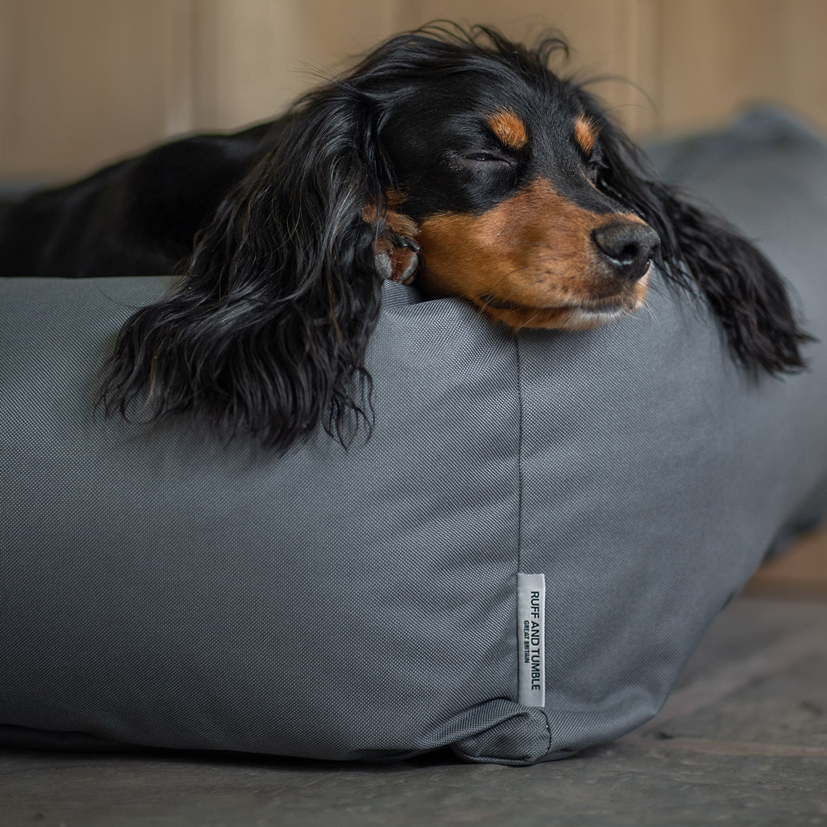 The new Ruff and Tumble Burnham Bolster Bed is made for deep, restorative, sleep, easy-care and long-life. With a double thickness, supportive mattress, and modern, durable canvas covers, it's a bed you and your dog will both love!