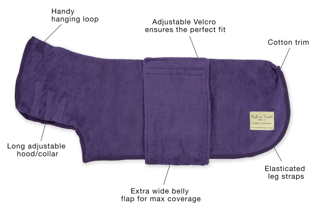 - Special feature: Ruff and Tumble Drying Coats are the only coats that have an extra deep collar - simply fold up to make a hoody that dries the ears and the head