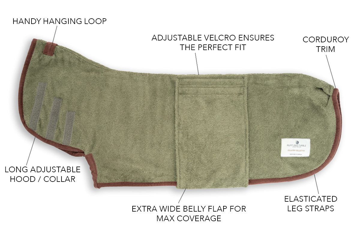 - Special feature: Ruff and Tumble Drying Coats are the only coats that have an extra deep collar - simply fold up to make a hoody that dries the ears and the head