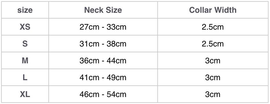 Available in seven sizes (XXS to XXL), our collars are tailored to fit a wide range of breeds.